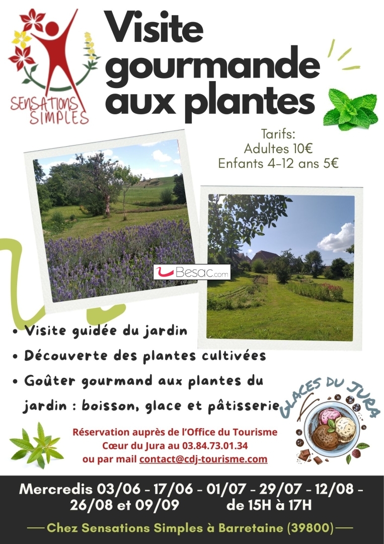 Visite guidée du jardin, découverte des plantes cultivés, goûter gourmand aux plantes du jardin : boisson, glace et pâtisserie.